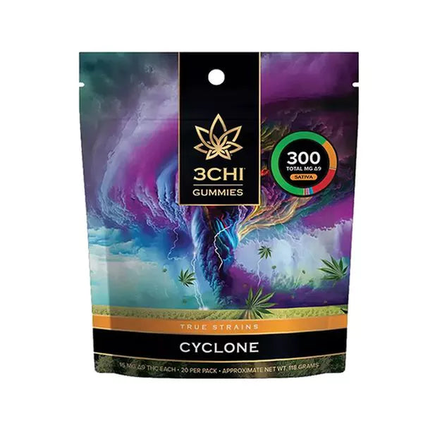 3Chi True Strains 300 mg Delta-9 Gummies deliver full-spectrum potency in a convenient 20-count bag. Each gummy contains 15 mg of Delta‑9 THC and other cannabinoids, blended with natural terpenes for strain-specific effects. These vegan gummies are lab-tested for purity and potency and derived from USA grown hemp.